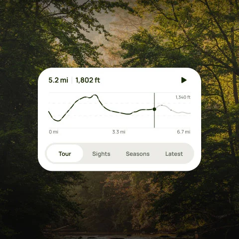 - View photos of the trail throughout the route