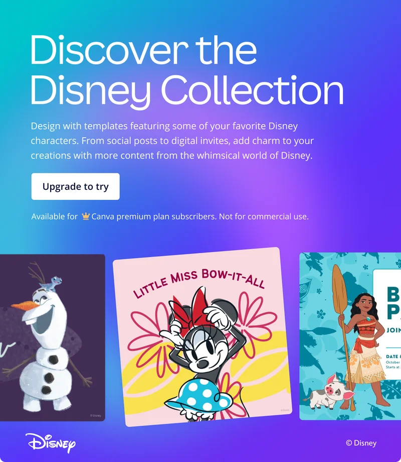 Design with templates featuring some of your favorite Disney characters.