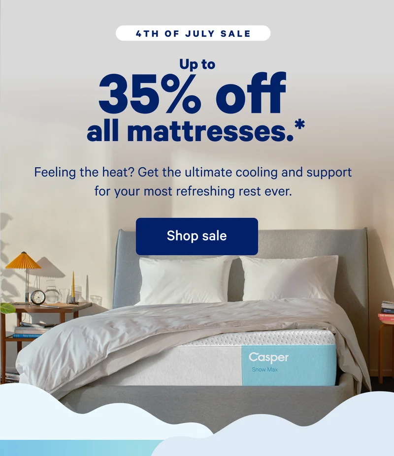 §Message and data rates may apply. Frequency varies. By signing up, you agree to receive promotional text / SMS messages from Casper using an automated system. Opt-out from receiving SMS text messages by texting STOP to 32006. This agreement is not a condition of purchase. † Terms and Conditions apply. 3 World Trade Center - Floor 40 New York, NY 10007 | © 2024 Casper Sleep Inc. If you prefer not to receive emails, you may unsubscribe. Casper Terms & Conditions and Privacy Policy |