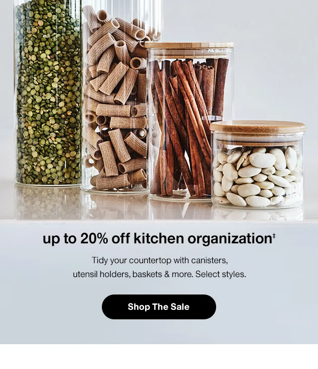 ‡UP TO 20% OFF KITCHEN ORGANIZATION: Select items on sale for a limited time only (not valid at Outlets). See product page for sale prices on all included items. Cannot be combined with any other offers or promotions, except free shipping (where applicable) and earning rewards or special financing.