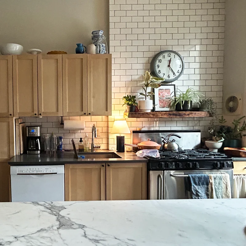 A few newsletters ago, I invited readers to send in photos of their kitchens and dining rooms for me to style. I heard from a whole bunch of you! My first styling assignment is for Erin, a Food52 community member. Now, let’s “level set,” as they like to say in the business world, or set expectations. If I was actually styling Erin’s home, I’d go to her house and move things around and bring in new products and make some go away. But I’m just here behind my laptop, assembling thoughts on what I would do. Ok, let’s get to it—here’s Erin’s kitchen and dining area: