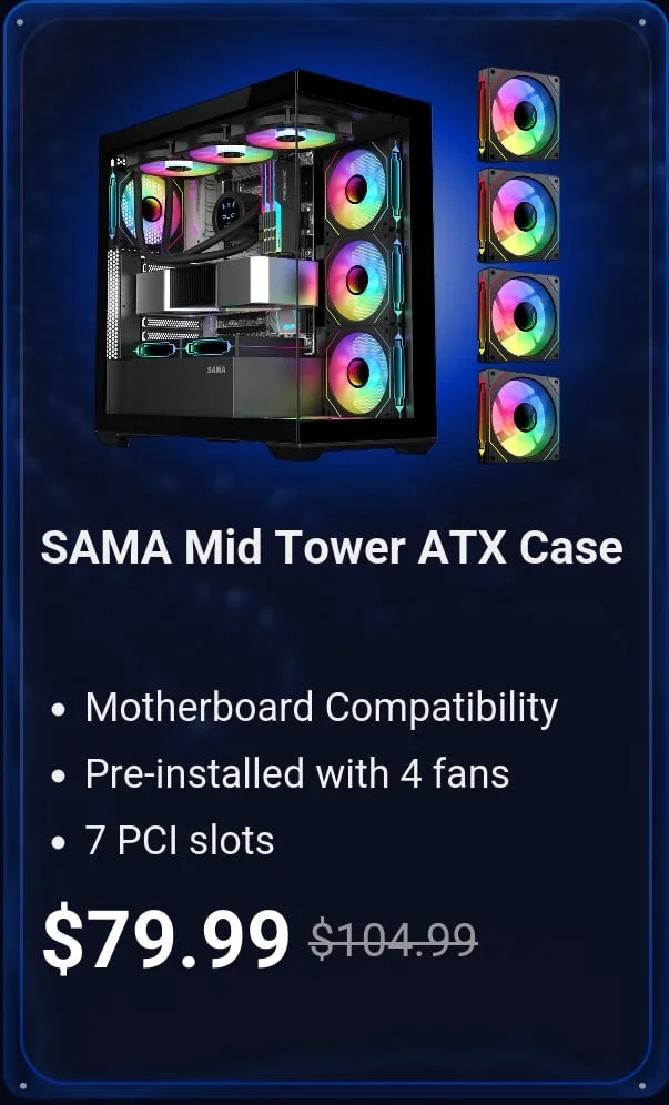 - Shape your setup with sleek cases like SAMA Mid Tower, fuel power with ZOTAC RTX 3060 GPU, amplify processing with Intel...