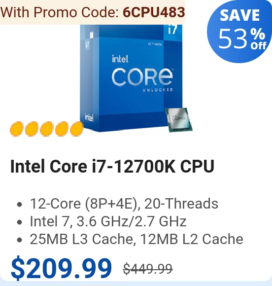 - Save $10 on Uber $100 Gift Card! $209.99 Intel i7-12700K Processor!