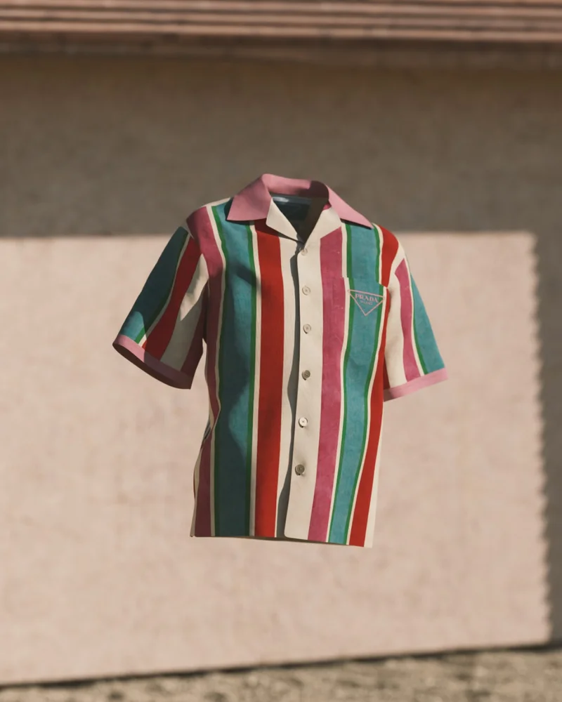 For Timecapsule drop #56, Prada unveils a new limited edition shirt featuring a unique retro-inspired print that captures the spirit of summertime. |