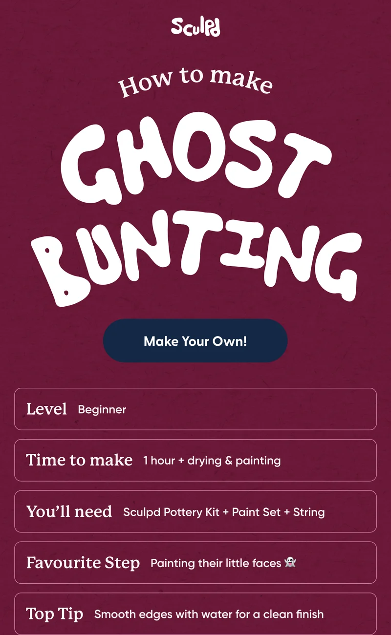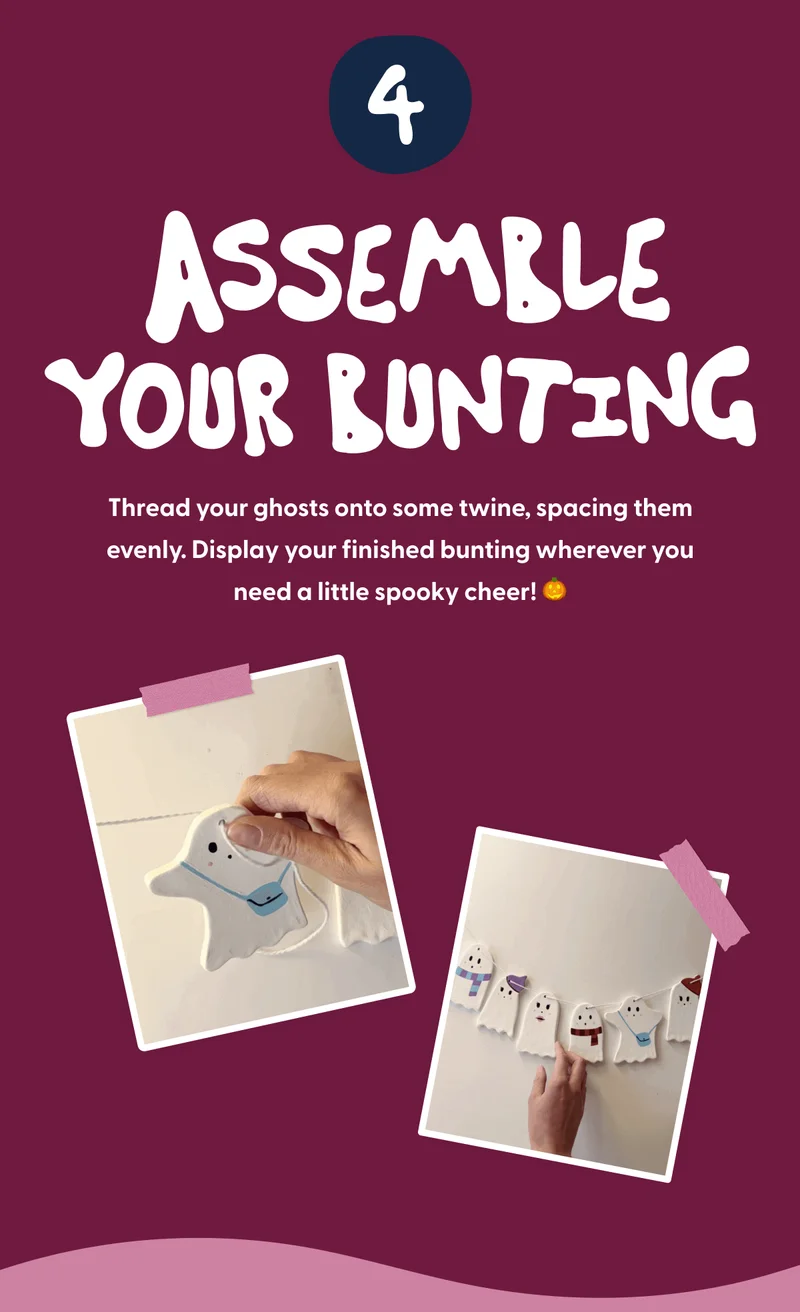 - Follow our easy step-by-step to create adorable clay ghost bunting!
