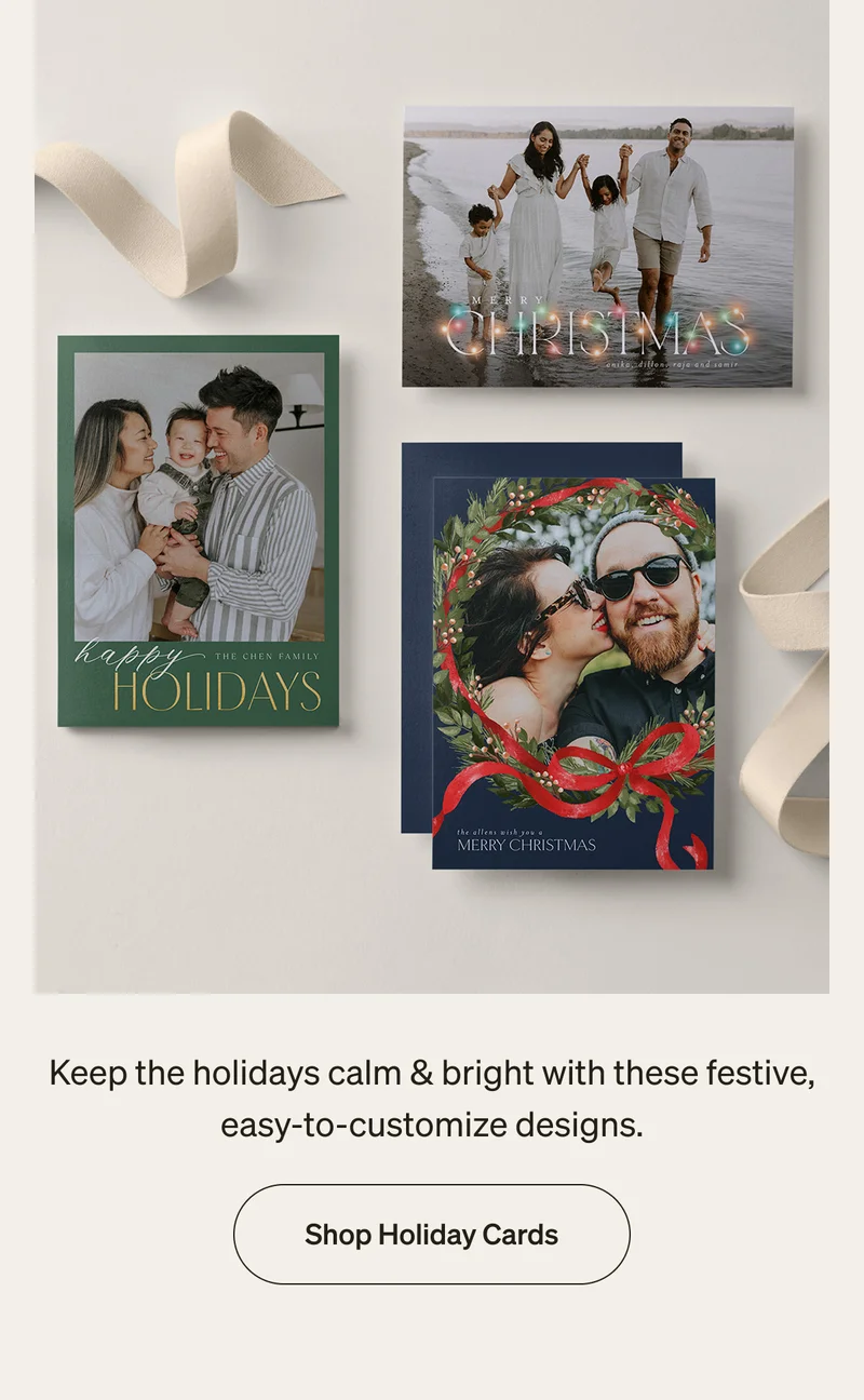 50% Off Holiday Cards: Offer expires September 14, 2025 (11:59 P.M. PT). Offer is good for 50% off cards and up to 50% off products (some exclusions apply) through shutterfly.com